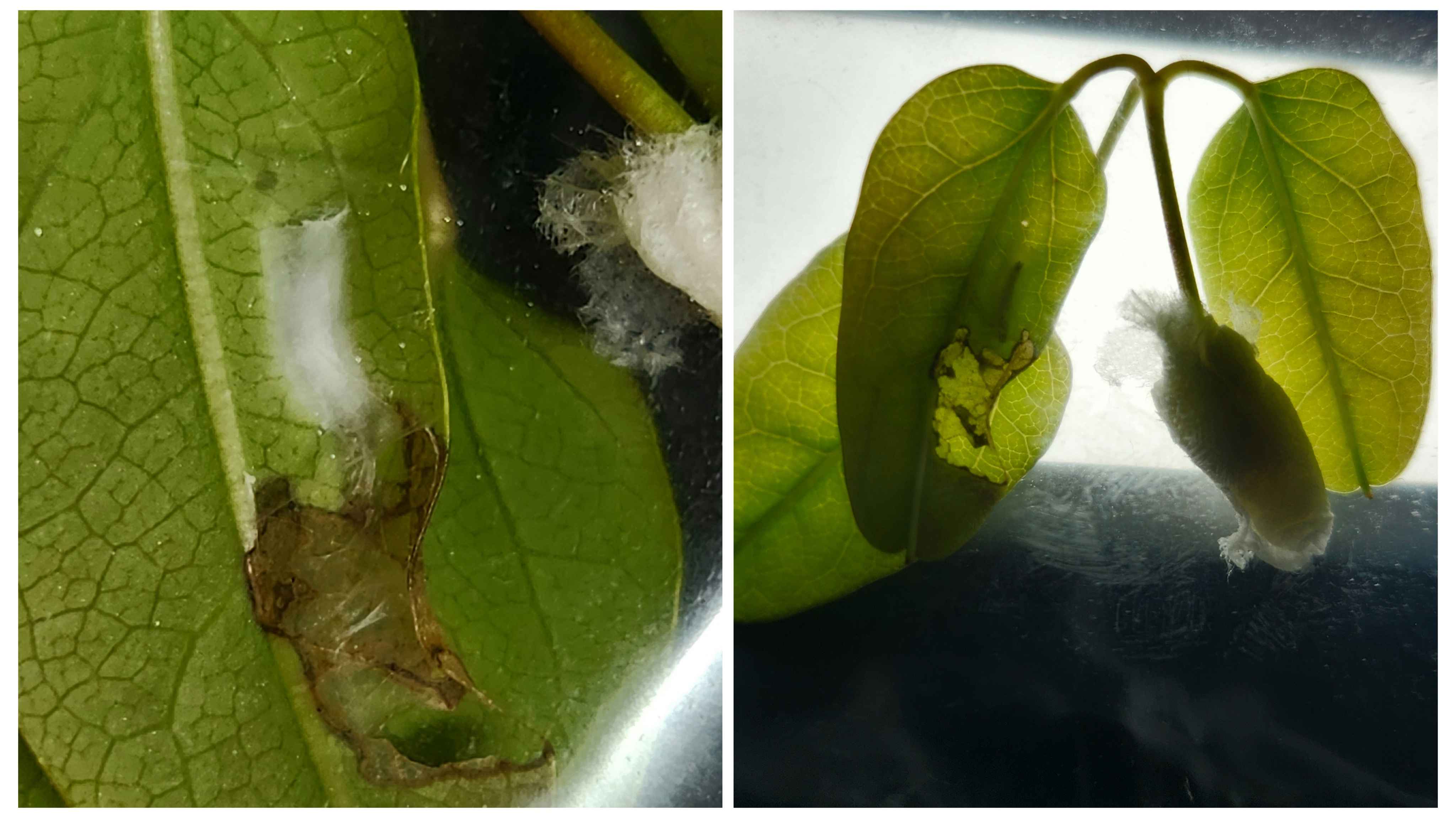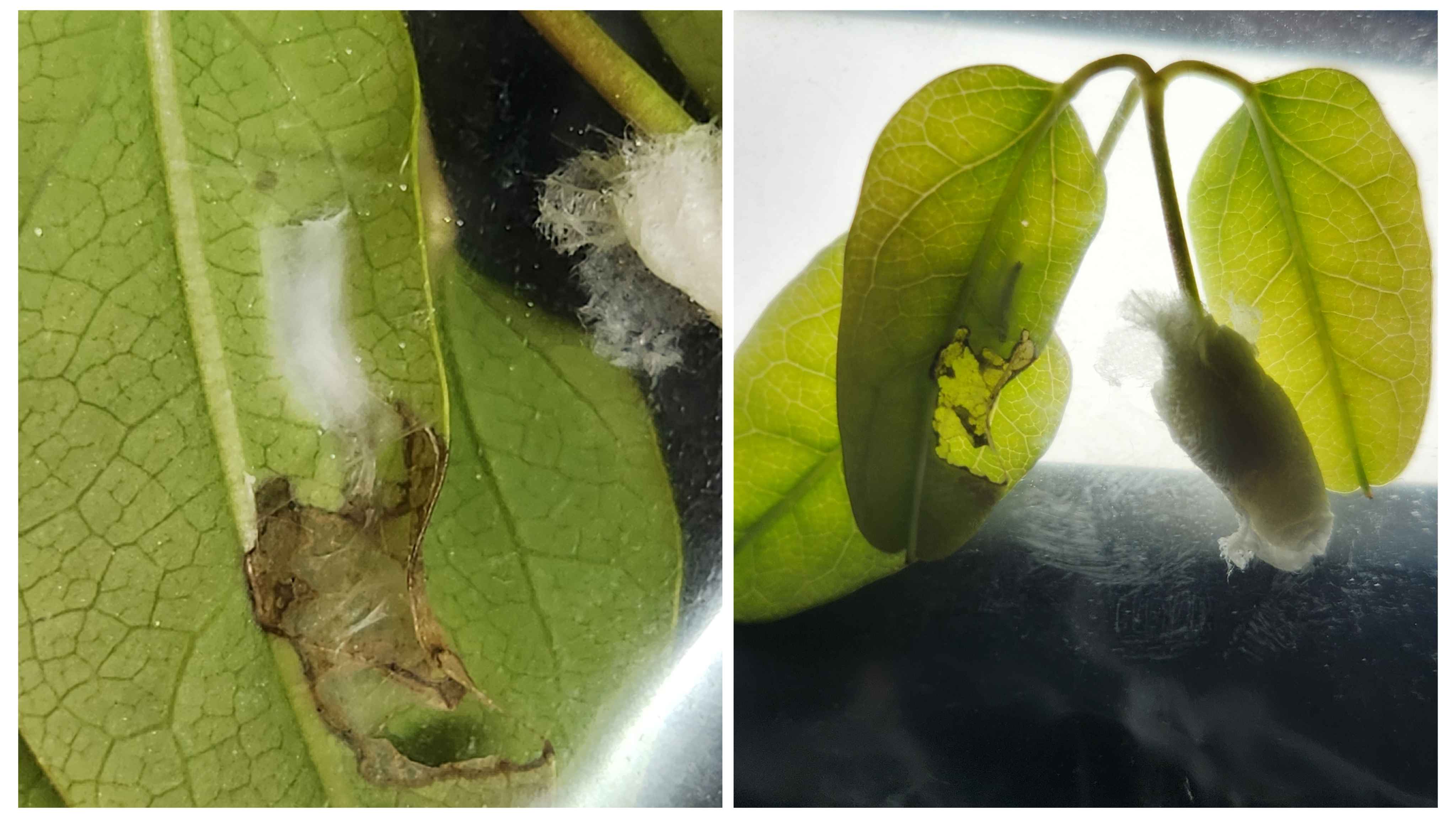 神奈川県 2026 2/3採集 ミツバアケビに糸を吐いて中に入っていました。飼育しようと思って葉をちぎって持って帰りましたが、羽化するのは何月くらいになるでしょうか?暖かい部屋に置いておけば早く羽化してくるでしょうか?それとも春になるまで冷蔵庫などに入れておいた方がいいでしょうか?どのように管理すればいいか教えていただけると幸いです。もし種類も分かれば教えていただきたいです。