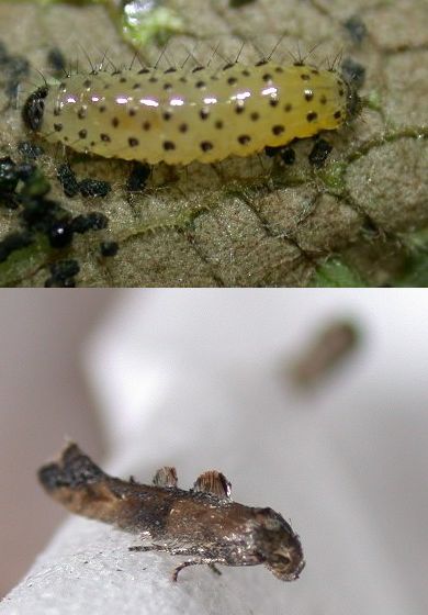 【掲示板から一言】 【幼虫写真1】(2005年9月29日、ノダケの葉)、【繭写真1】(同年10月2日)、【成虫写真1】(同年10月6日-13日に羽化)は同一個体群で、熱海市内林縁ノダケの葉より採集。【成虫写真2】と【成虫写真3】は新潟県栃尾市、ササウドより採集した幼虫を飼育羽化させたもので、2000年6月羽化。【幼虫写真2】は2005年10月2日の幼虫と同月19日の成虫で熱海市。