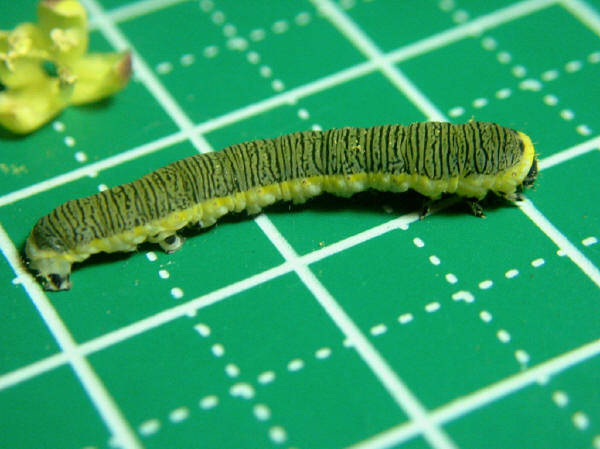 【掲示板から一言】 幼虫は時にモチノキを丸坊主にする。ハバチの幼虫に似た質感の大きな尺取虫。【成虫写真1】は2004年5月29日、明石市明石公園にてで、約20mm。【成虫写真2】は6月23日、千葉県館山市。【幼虫写真1】は2005年4月16日、明石市(明石公園) モチノキ。【成虫写真3】は2005年6月12日、神奈川県観音崎。