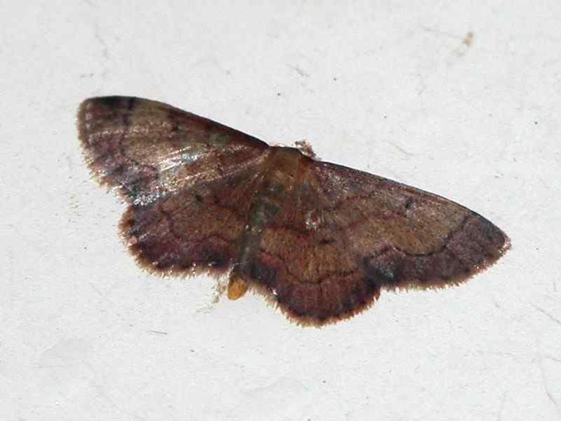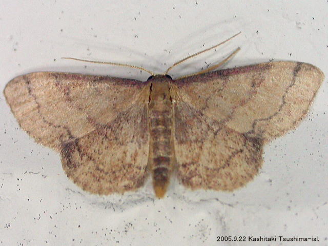 【掲示板から一言】 クロテントビヒメシャクに似るが、本種の方が小型で、外横線の外側がそれほど濃くない。【成虫写真1】は2004年6月26日、南紀・日置川町にて。【成虫写真2】は2004年7月4日、南紀・日置川町にて。【成虫写真4】は2005年8月14日、山梨県北杜市大泉町西井出。【成虫写真5】は2005年9月22日、対馬市上県町樫滝。【成虫写真6】は2006年8月12日、山形県飯豊町。【成虫写真7】と【成虫写真8】は同一個体で、2006年8月26日、富山市(古洞ダム周辺)。