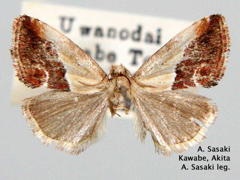 【掲示板から一言】 前翅の内側はくすんだ淡黄色で、前翅の後縁側中央の赤紫色っぽい紋の内側の境界が途中でくぼむ傾向がある。
