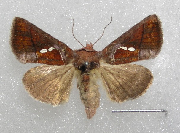 セアカキンウワバ Erythroplusia pyropia (Butler, 1879)
