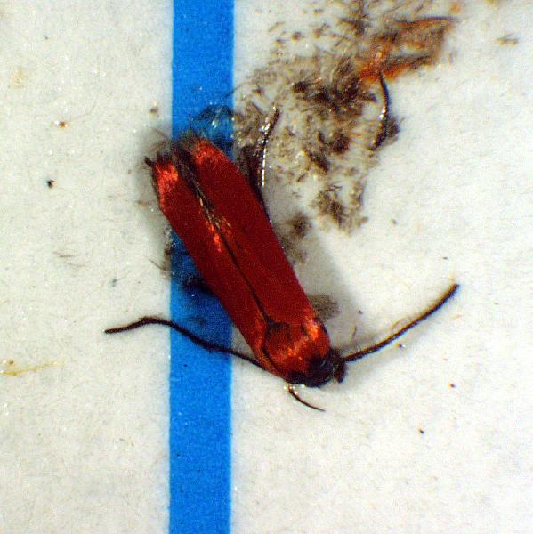 【掲示板から一言】 アカヒゲトゲアシガをWalsinghamが1889年に記載した際、既にこの真っ赤な翅の蛾の存在を知っていたようだが、「手持ちの標本の状態がタイプに指定するには悪すぎる」と言う理由から記載を見送った。日本産Oedematopoda属の分類は大英博物館に出向くか向こうの共同研究者を得る必要がある。どなたか是非研究をお願いします。【成虫写真1】と【成虫写真2】は同一個体で、2004年5月12日神戸市にて。【成虫写真3】は奈良県にて。【成虫写真4】は2003年5月24日、岡山県英田郡東粟倉村。【成虫♂写真1】は2001年7月、岐阜県南濃町で、カキノヘタムシガの試験用フェロモントラップに、2日で50頭以上来た。【成虫写真5】は2006年5月12日、紀伊半島で、【成虫♂写真1】ともアカヒゲベニトゲアシガとも違う。【成虫写真6】は2006年5月26日、東京都日の出町で、【成虫写真5】と同種と思われる。