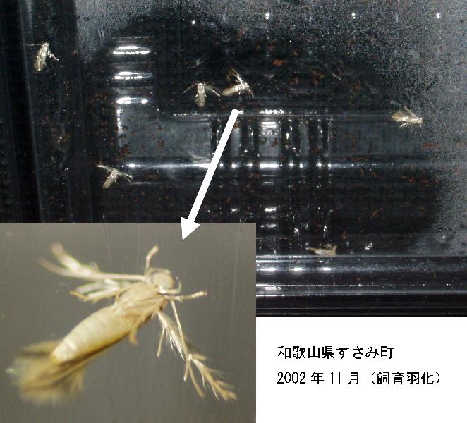 【掲示板から一言】 白いニセマイコガは大体この属のもの。キバガにも似た静止姿勢を取るものがるが、キバガではlabial palpiが垂直面で湾曲する。【成虫写真1】と【成虫写真2】は同一個体。【成虫写真4】は幼虫がシダ胞子を餌とする仲間。【成虫写真5】は2005年6月11日、南紀 中辺路町。【成虫写真8】は2005年8月13日、父島で少なくとも日本未記録種。【成虫♂写真1】、【成虫♂写真2】、【蛹写真1】、【幼虫写真1】、【幼虫写真2】は同一飼育個体で、2005年8月23日、牛久市、ベニシダの胞子を食べていた。【成虫写真9】は2007年5月15日、兵庫県淡路市(淡路島)。