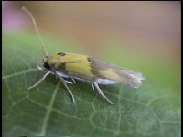 キイロマイコガ Stathmopoda auriferella (Walker, 1864)
