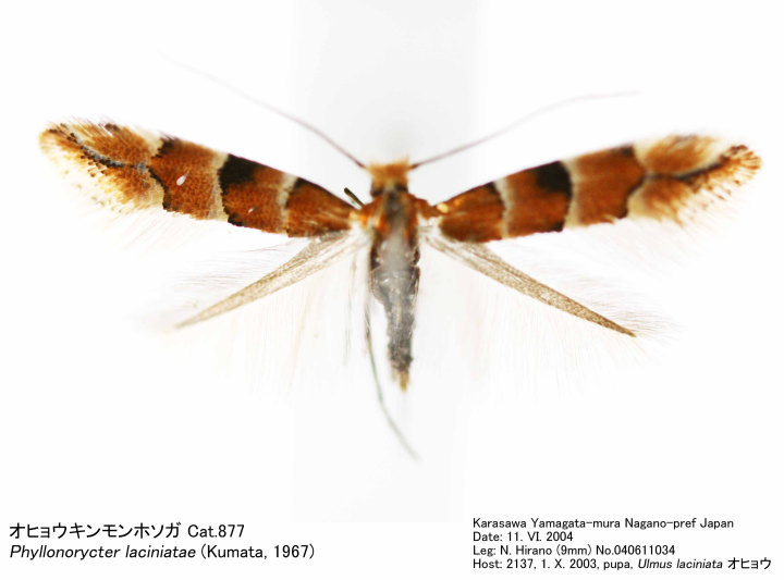 オヒョウキンモンホソガ Phyllonorycter laciniatae (Kumata, 1967) Cat.877
