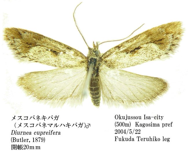 早春に各地で普通. イッシキメスコバネマルハキバガより出現期は早く, 3月初めから現れる. 年1回の発生, |