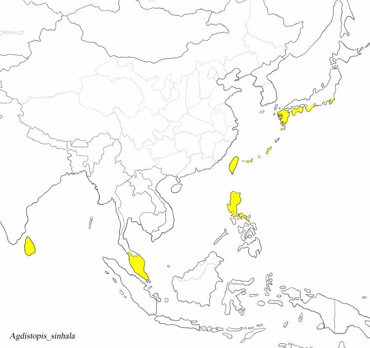 台湾,シンガポール,スリランカ、フィリピン、日本(本州,四国,九州、屋久島,沖縄島、石垣島、西表島); |