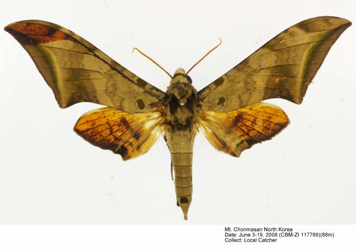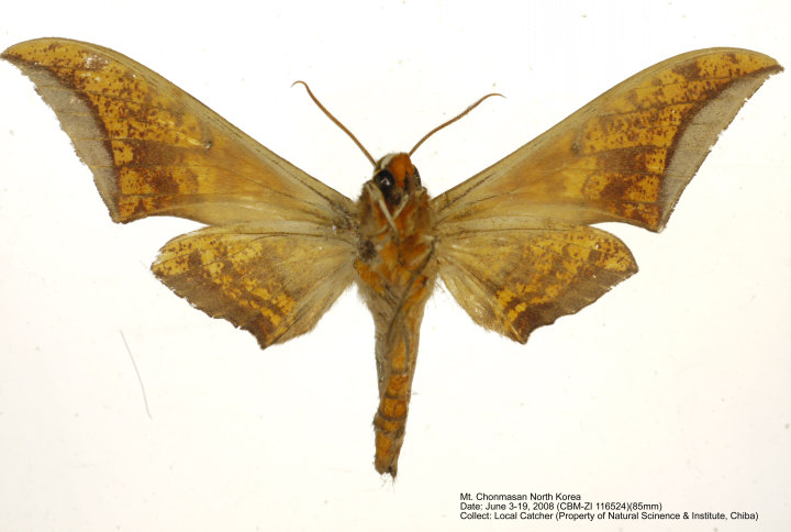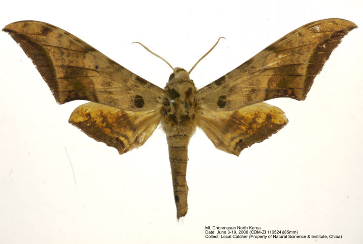 第6腹節側面に小さな紋がある. 前翅亜外縁線は翅頂から強く弓状に湾曲したのち後角に至る.