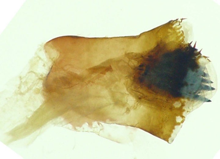 ホシカレハによく似ているが, 前・後翅外縁の屈曲がいっそう弱く, 後翅はいっそう細長い. ことにRsの先端部で角ばり, その前後が直線的, ♂ではCuA2あたりで細く出ばる. 色彩は一般にホシカレハより濃厚で, 赤褐色, 後翅の中室より後は黒っぽいことが多い. |