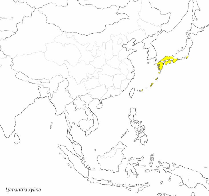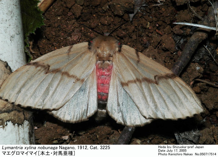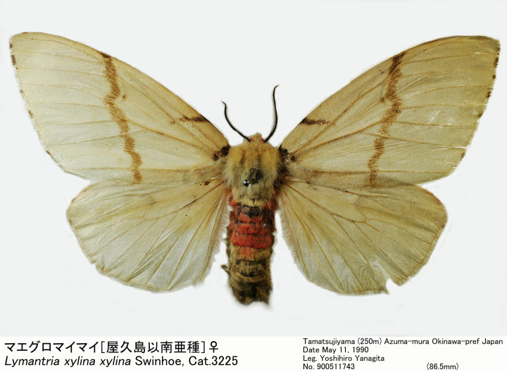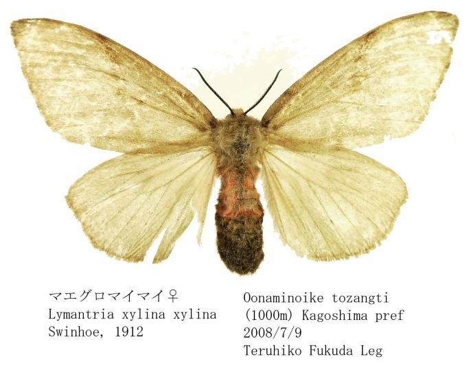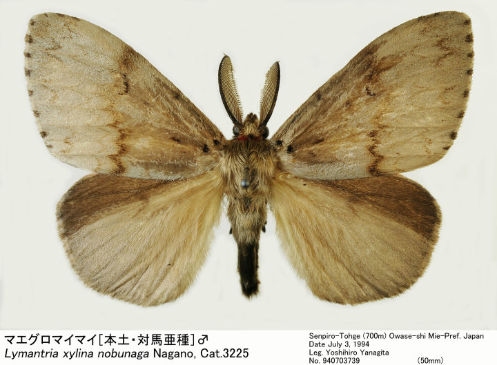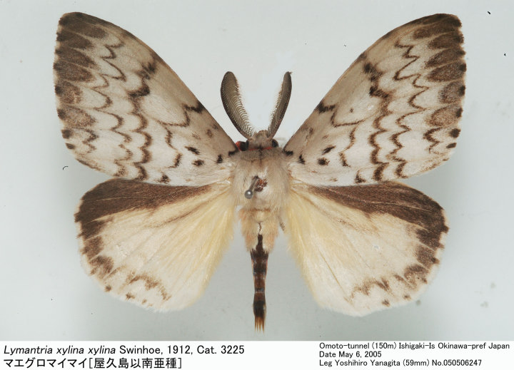 Lymantria xylina Swinhoe, 1903 マエグロマイマイ,Cat.3225 xylina nobunaga Nagano, 1912 [本土・対馬亜種] xylina xylina Swinhoe, 1912 [屋久島以南亜種]