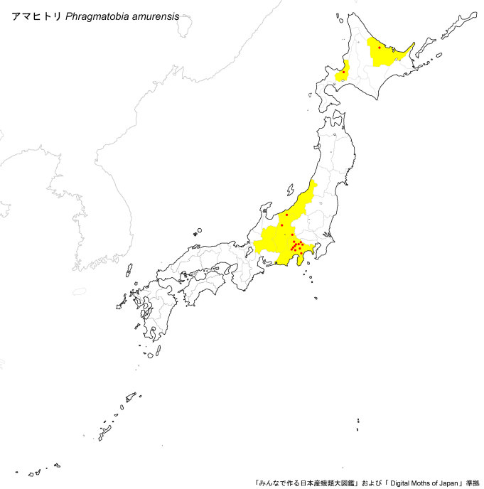 原名亜種は北海道, サハリン, シベリア南東部に分布する. 亜種japonica Rothschildは, 原名亜種よりやや大きく, 赤味が弱く, 後翅の黒斑がいっそう強い僚向がある. 本州に分布するが, 朝鮮半島の南部のものは同じ亜種に属するものと思う. 東北地方北部から中部山地に産する. | |||