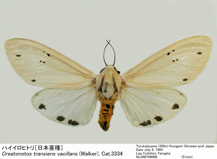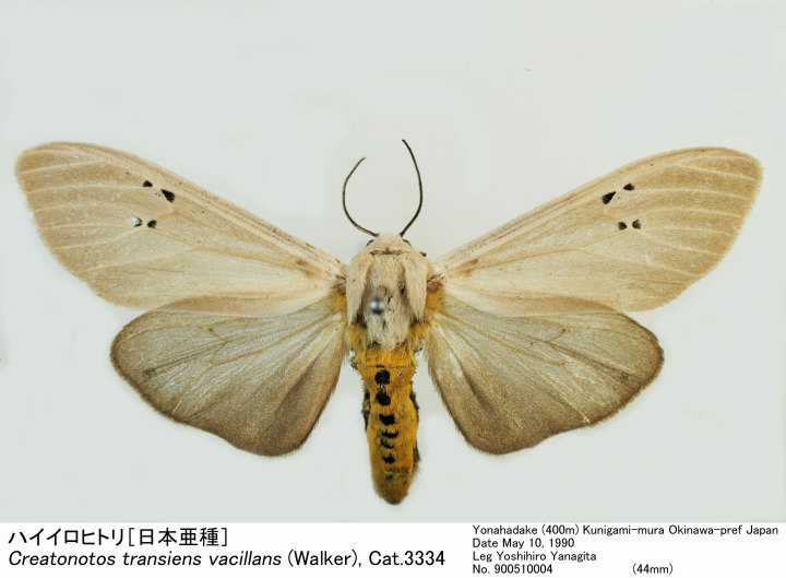 | Taxonomy | Spilosoma transiens Walker, 1855 Amphissa vacillans Walker, 1855 Aloa isabellina Walker, 1855 Creatonotos transiens Walker; Holloway, 1976 Creatonotos transiens orientalis Nakamura, 1976 |
