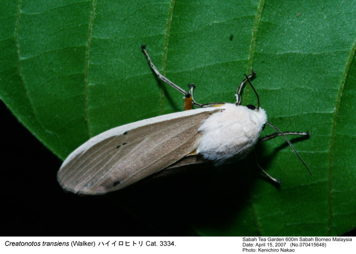Creatonotos transiens (Walker) ハイイロヒトリ Cat. 3334. |