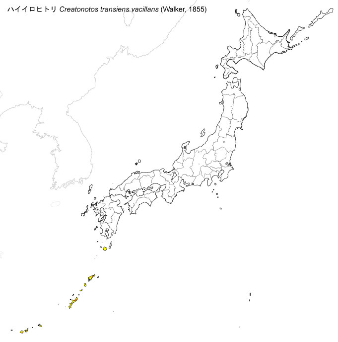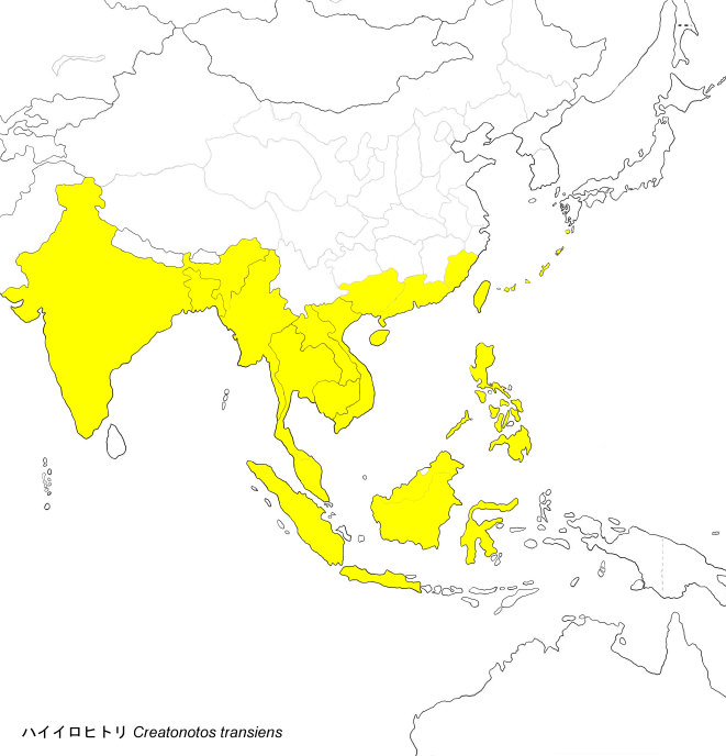 and Sulawesi Frequent in agricultural agras, open habitats and secondary vegetations ネパール, インドから東南アジアに広く分布し, いくつかの亜種に分けられているが, 日本, 台湾, 中国南部の亜種をvacillans (Walker) という. 屋久島, 奄美大島, 沖永良部島, 沖縄本島, 宮古島, 石垣島, 西表島に分布する |