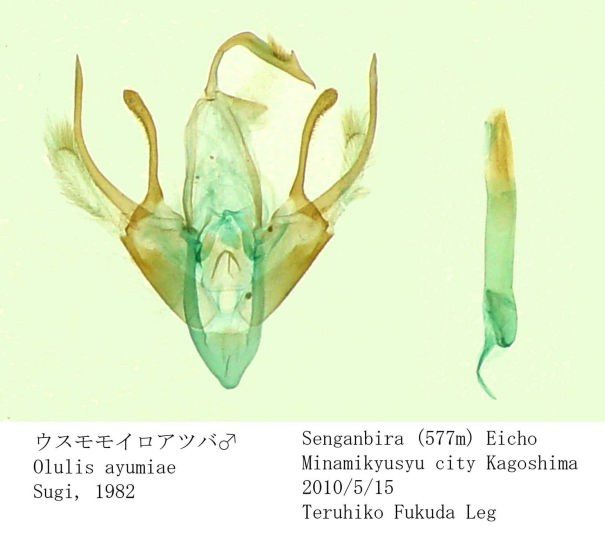 ♂. 静岡県引佐郡奥山, 18.V.1967 (斎藤偏理). 筆者所蔵.