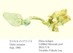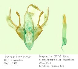 ほとんど糸状に近い. 翅型, 斑紋は前2種と類似する. 前翅は淡いオリーブ色,