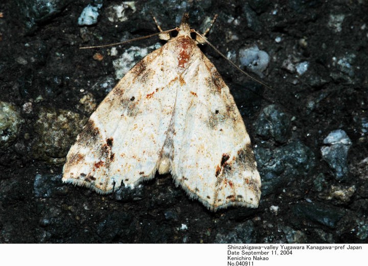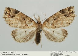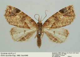 淡色の横線を表す. ♂交尾器: uncus は長く, 背面には基方に向かう小突起を生ずる.