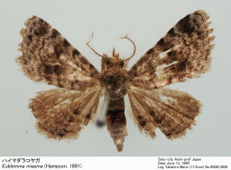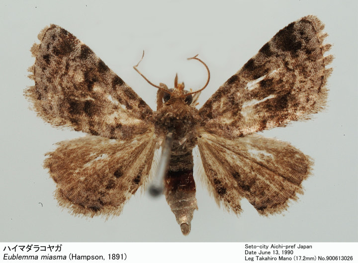 斑紋が一致しないようにも見え, 同定に自信が持てなかった. ようやく大英博物館で模式標本を調べ,確認できた. Hampson (1894)のmiasmaの模式産地はインド南部のNilgiri地方,