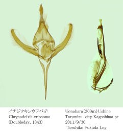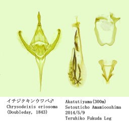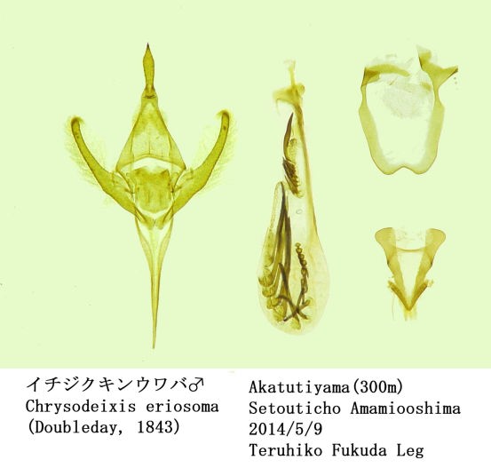♂交尾器は, Chrysodeixis では体に比して小さく, valva は単純で, saccusは針状に細く突出する.