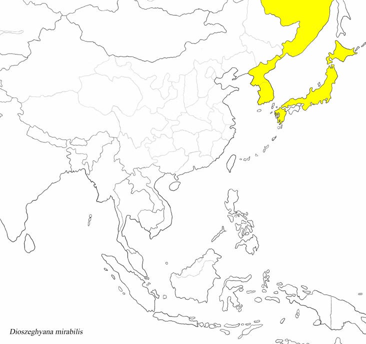 | Geographical range | SE Russia, Korea, Japan (Hokkaido, Honshu) 日本から記載されたが, 朝鮮, 沿海州からも報告されている. 北海道では十勝西南部, 東北地方では青森, 秋田, 岩手県の記録があるがやや局地的, 関東地方から東海地方に産し一般に少ない. |