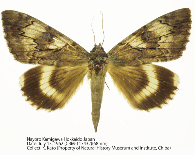 | References | Moths of North Korea by K.T. Park, page 149 Ishizuka K. , 2011, Catocala of the World: 74 Kishida Y. et al, 2011, The Standard of Moths in Japan2: 244 VS Kononenko, SB Ahn, L. Ronkay, 1998, Illustrated Catalogue of Noctuidae in Korea: 54 |
