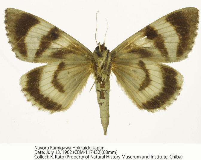 | Biology | 北海道でシナノキから幼虫が見出されている. | |||
