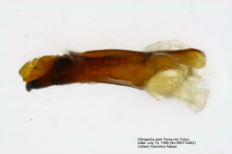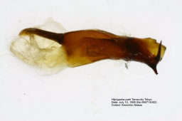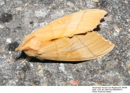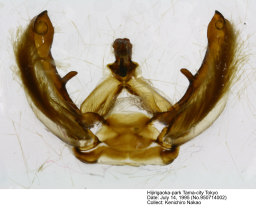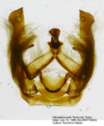 対馬および西南離島産の標本では本土産に比して前・後翅とも強く橙褐色をおび, 内外横線は顕著な波状を呈する傾向がある. 両型間に交尾器の差異は認められない. |