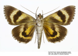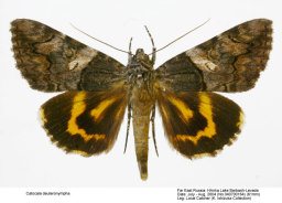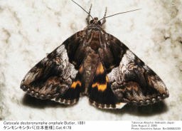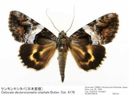 | Geographical range | 種deuteronympha はバイカル湖付近から沿海州, 中国北部に分布し, いくつかの亜種が命名されている. 特に後翅斑紋の地理的な変異が顕著で, 内陸の原名亜種では, 通常の Catocala のように黄色の地色に黒色帯を有するが, ウスリーの亜種 d. geyi Staudingcrや日本の亜種 d. omphhale But1er では, 黄色部が著しく縮小し, 内外の黒色帯が接近する. 北海道, 東北地方, 関東および中部の山地に分布. | |||