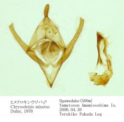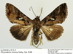 前翅は濃い黒褐色, ほぼ全面に金銅色の光沢がある. 中央の銀紋は小さく, 時に分離する. クロガネキンウワバ と一見似ているが, 外横線が亜中脈嚢で深く内方に切れ込むこと, 外縁に接し, M3脈付近に小さい黒色条を表さず, 後縁角に橙赤色影を持たないことで識別し得る. ♂交尾器の uncus が先端の鈍い太めの棒状であることは本種に固有の特徴である. Chrysodixis 中の小型種.